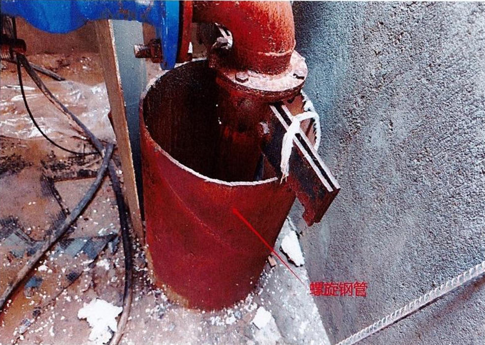 - 现场检测:对上部螺旋钢管进行现场壁厚测量,四个方位各三个点位,测量结果平均值为6.5mm,双方签字确认检测方法及结果
